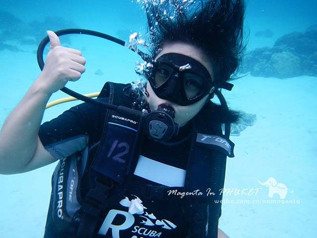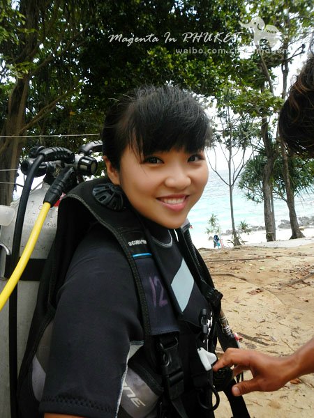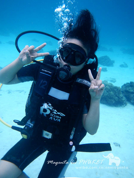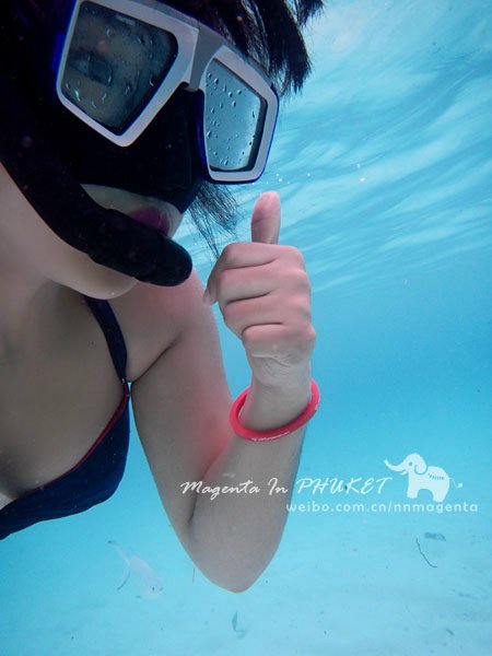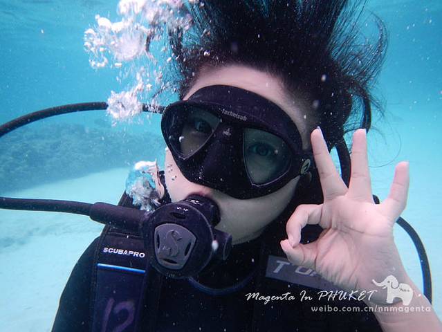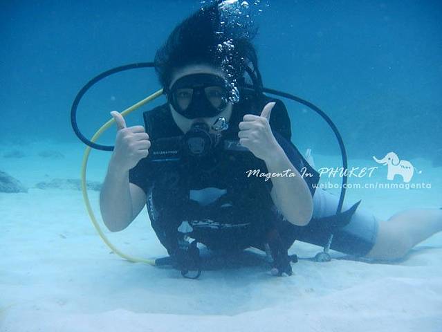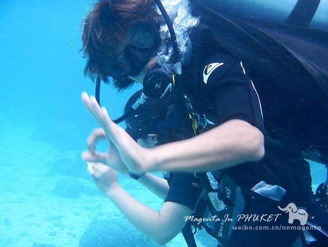 这就是我的潜水教练Bank,他一直给我比OK的手势。其实,这是我的第二次潜水,第一次是在三亚的亚龙湾。当时潜水也是一个教练带一个人,但是整个潜水过程也就十来分钟,大部分时间都是向你推销拍照啊什么的。那时候潜水一次380RMB,水下拍照录影再加400RMB,由于太贵,我当时没有加。当我拒绝拍照后,那潜水教练的脸掉的那叫一个长,带着我也没好好潜,没几分钟就把我捞上岸了。所以,相比之下这次在皇帝岛潜水真是爽翻了。时间够长,看到的东西够多,潜的也比较深。最关键的是有一个很Nice的教练,帮我们省钱,啊哈哈哈!