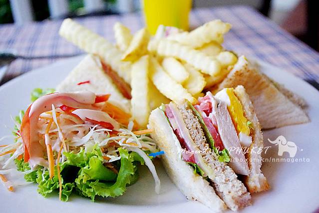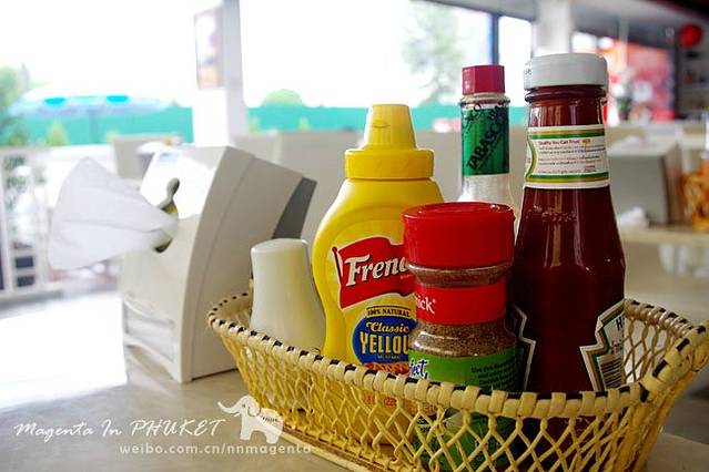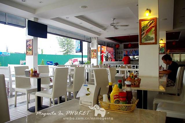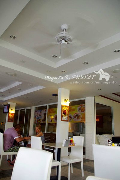 从酒店往江西冷(芭东海滩的购物中心)方向走,大概几十米的样子,就看到这样一家餐厅,名字好长,我念不出来。但是这家的环境深深吸引了我们。纯白色的桌椅,田园感的装修,还提供免费wifi,Anita忍不住就想往里走。但是我有点迟疑,因为凭我在国内的经验,装修好的馆子味道基本上都不咋样。但是一方面这里环境真的很好,另一方面我真的饿了,所以妥协了,准备走进去试试。没想到结果出人意料的好。