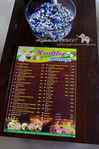吃完饭,本来说是继续赶路,但是一想,来到泰国连泰式按摩都没尝试过岂不是太可惜了。所以就走进了饭店隔壁的按摩店。这里的按摩师推荐我们用加精油的泰式按摩,400B一个人。我们同意,心想舒服就好。可是我和Anita却感觉完全不一样,因为虽然是同家店,我们就在紧邻的两张床上按摩,但连个技师的手法完全不同。Anita的技师很nice,给Anita做了很多舒展拉伸的动作。而我的技术却感觉是在敷衍了事,只是一个劲的往我身上抹油,我感觉这400B就是光买油了。最后结束时,Anita感觉舒服极了,可是我感觉一点都不好,我问Anita的技术为啥你们给我们做的不一样呢?无奈他听不懂,然后我就比划着说我哪些哪些动作没有,他明了,过来帮我做了几个,果然舒服一些。但也就是帮我稍稍做了几下,然后就结束了。好吧!马杀鸡算是我在泰国比较失败的一项尝试了,印象不好哦!