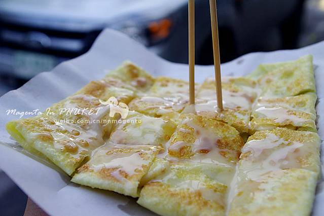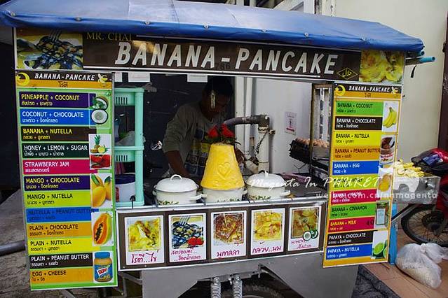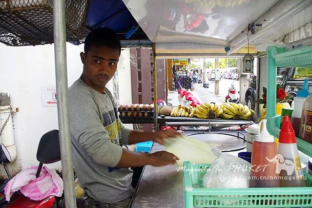 再来普吉之前我就打算要吃一个banana pancake,果然,这里街边有很多这样推着车车的摊子。果断走上前要了一个,40B,我不知道是否贵了。反正换算为RMB不到10元,我也觉得能接受。之前看攻略的时候大家都说在普吉买什么都可以搞价,但是在这样的小摊跟前,我实在是张不开口!