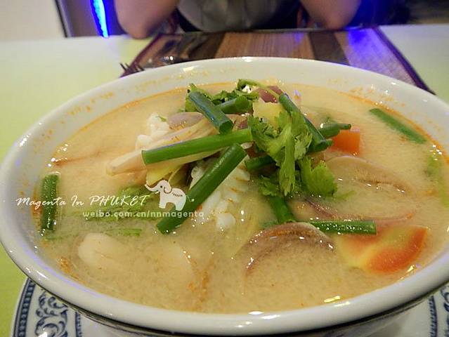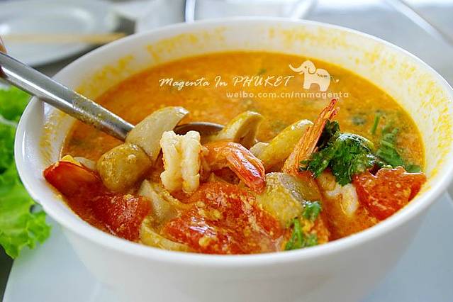 冬阴功汤,我们基本上是每餐必点的。我是内陆长大的孩子,吃海鲜的机会不多,所以来了普吉基本我都会点海鲜的食物。这碗冬阴功里大虾很多,味道酸辣过瘾,我喜欢!