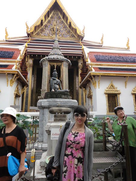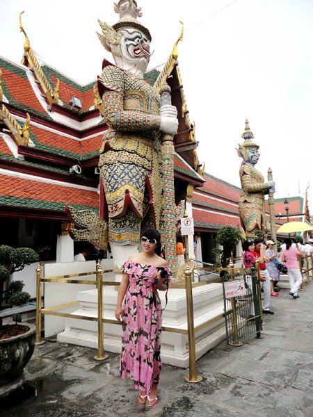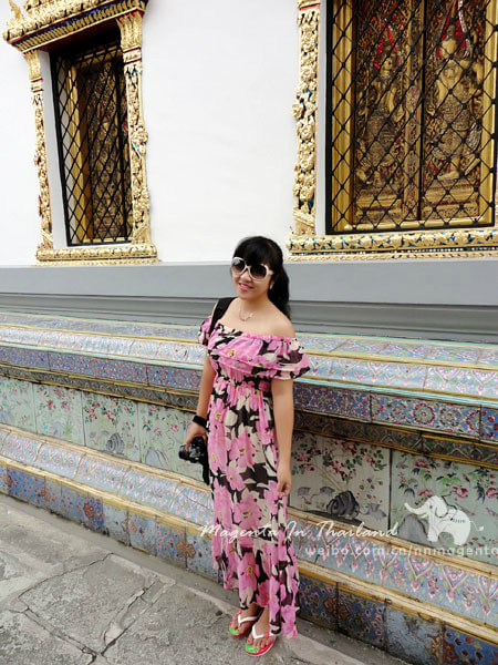 穿着外套实在是太热了,一身一身的汗,于是我就直接脱了。这条裙子是我带来泰国的唯一一条长裙,也是为了大皇宫才带来的。淘宝上败的,120RMB。嘻嘻。没想到也还挺上镜。