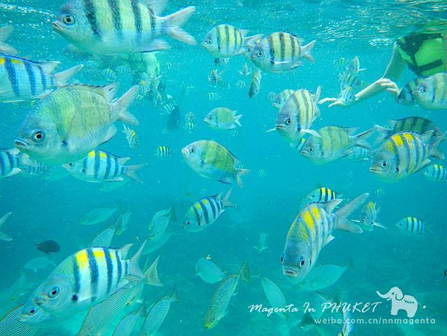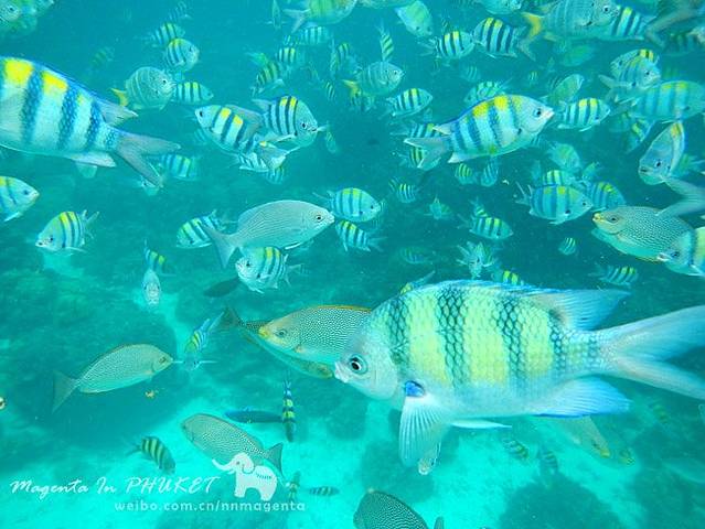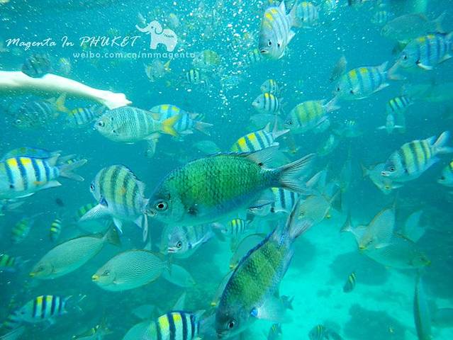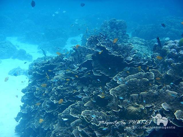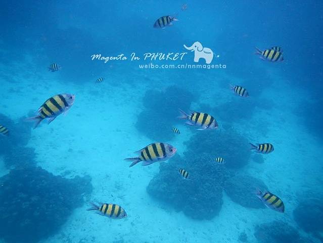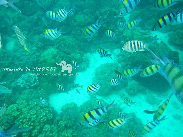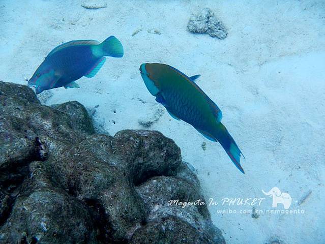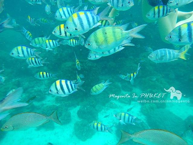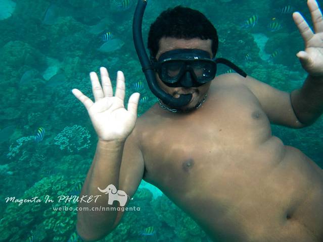 我们的午饭是从船上搬下来的食物,味道还不错。可惜只顾着吃忘记拍照了。酒足饭饱之后我们开始再一次的浮潜。这次我问导游换了个面罩,果然好多了,一点也不进水。所以我建议大家浮潜前最好试试自己的面罩,因为经常会出现不合适的现象。省的和我一样,弄的呛水。