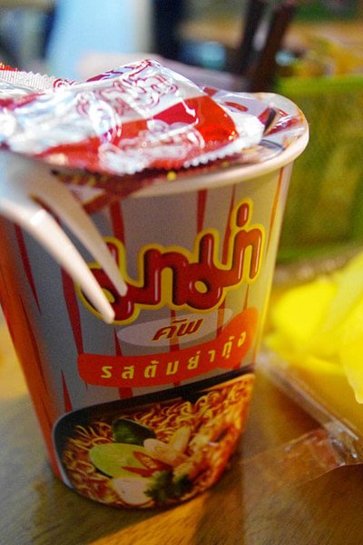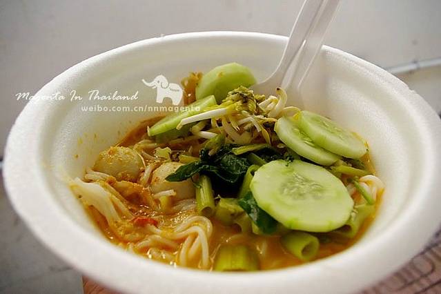 走了不过10分钟,就看了很多卖小吃的7-11的便利店,在便利店买了明早的早点。看到那里也有卖电话卡和刚刚吃过的泡面。对电话卡有了阴影,所以我没看。泡面是15B一碗,顿时有一种被宰过的感觉!