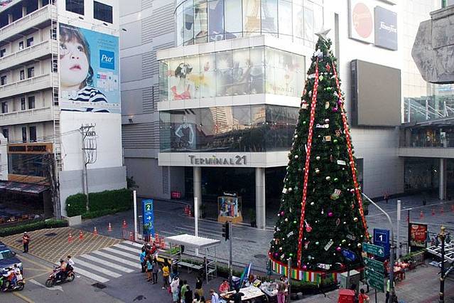 不一会,便到了Siam的Paragon商场,其实就和国内的商场一样,没啥特别之处,我们什么也没买。但是门口的圣诞树却吸引我拍照了。从没遇到过热热的圣诞节,我脑海中的圣诞都应该是白雪皑皑的。