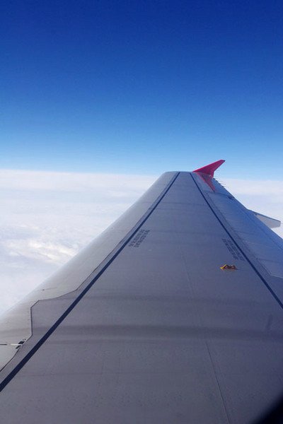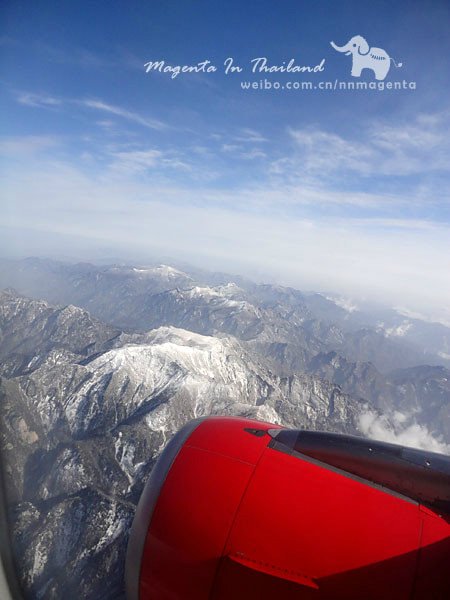 上一张大鸡翅的照片,西安的天空总是灰蒙蒙的,但是飞机一冲出厚厚的阴霾,就能看到如此美景。想着马上就能去泰国了,开心的不得了。