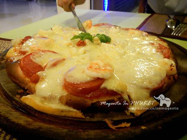 今天潜水耗费体力太大,所以晚上要好好吃吃!我和Anita在住所附近转悠,最后随便找了一家坐了下来。我们点了海鲜Pizza,味道一般般。所以这家店的名字我就不公布了,因为不推荐大家去。这顿晚餐490B!