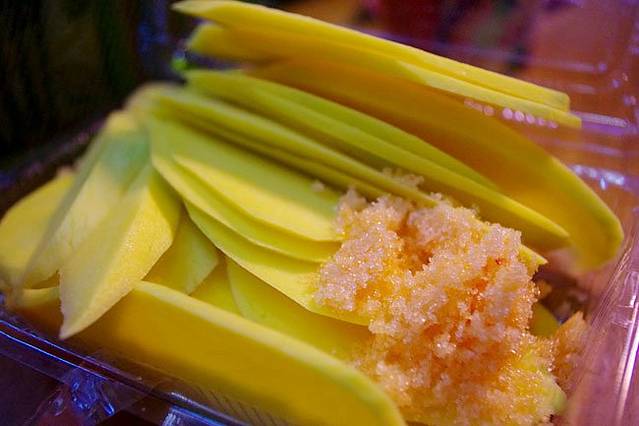 搞完电话卡我们已经精疲力竭,想吃东西发现机场的餐厅基本都打烊了。晕!无奈在一个咖啡小店做下,要了一碗泡面,45B,相当于人民币10元。Anita说来泰国没有水果怎么行了,于是又要了一份芒果。但是那芒果的味道完全和想象中不一样,酸涩的要命,还要粘着旁边的那像糖一样的咸味的东西吃。我和Anita顿时感觉悲催及了。这就是我们旅行的第一餐吗?这就是美好的泰国之旅吗?