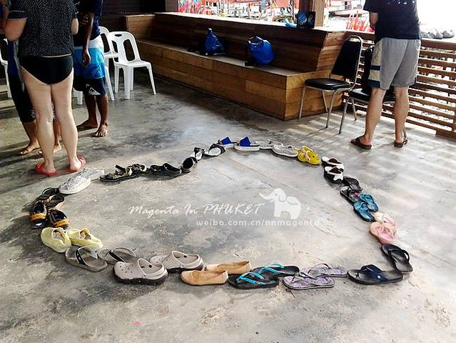 回到码头的时候,贴心的服务人员把大家的鞋子摆成了心形。太有爱了!就是这样的细节,决定着你工作的品质!国内的旅行社值得学习啊!