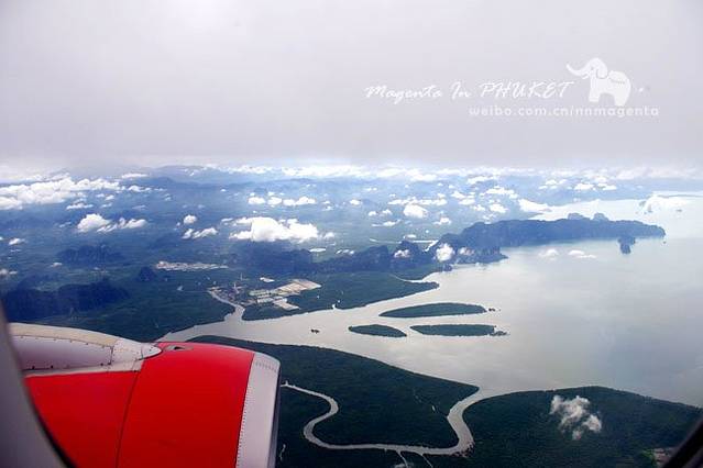 相比从西安去曼谷,这趟飞普吉显得轻松了许多。大约一个小时左右的,我透过窗户就能看到如下的美景。我知道,普吉就在我眼前了!