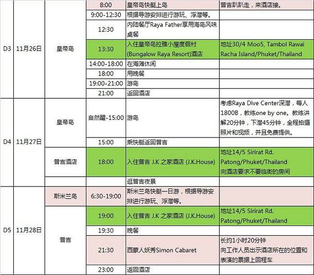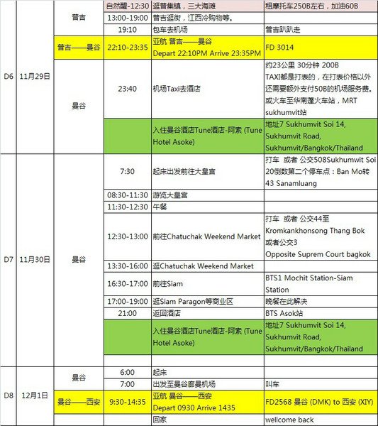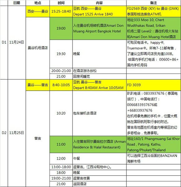 先上一张去之前做的行程表,我们整体的活动安排基本上都是按照这个来执行的。希望给要去的朋友一个参考。