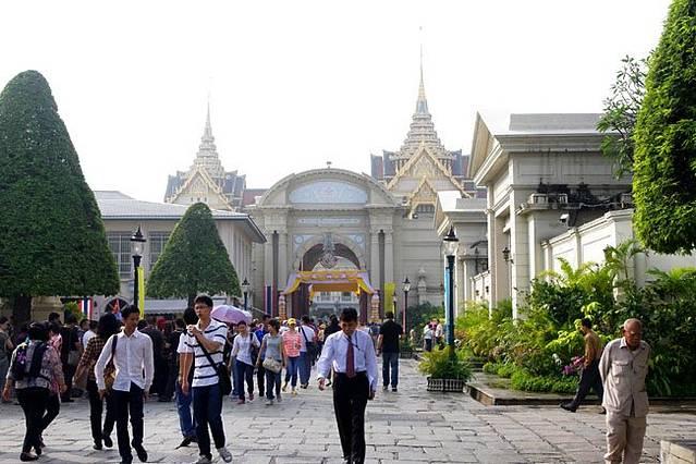 没多久,大皇宫到了。大皇宫门票每人400B,好像还含了一个什么寺庙的门票,人太多,我们没去。我个人认为大皇宫还是值得去的,就像你去北京,总得去去故宫吧。大皇宫内的建筑挺不错的,总之是各种金碧,各种辉煌!唯一不好的是人太多,太多......