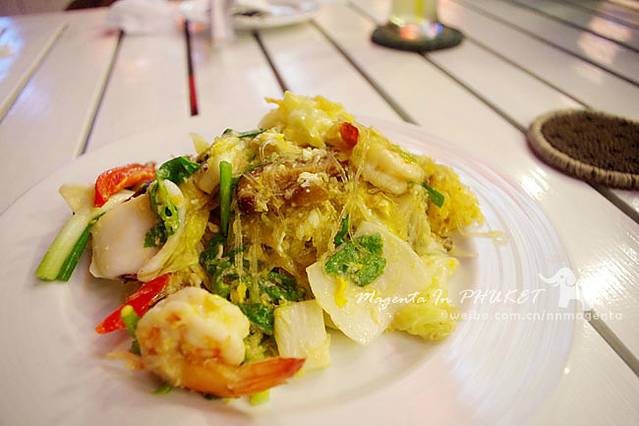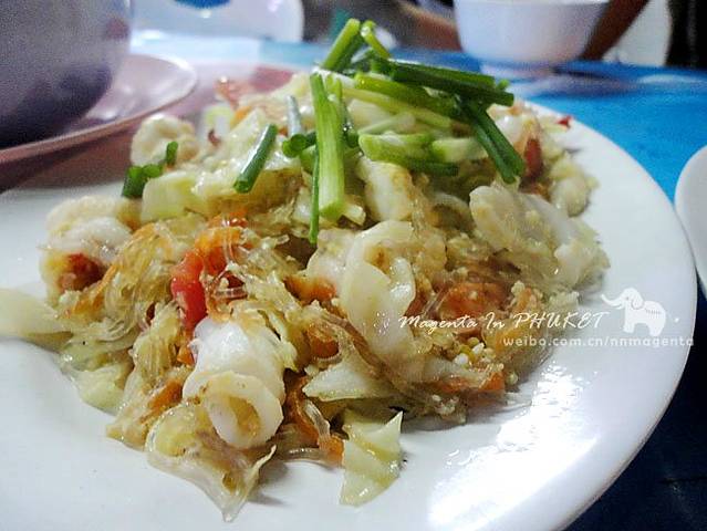 不要小看这盘东西,超好吃哦!我感觉是我在普吉吃过最好吃的食物。他的名字,应该叫海鲜炒粉丝吧!哈哈哈,我感觉自己已经爱上泰餐了!价格:60B