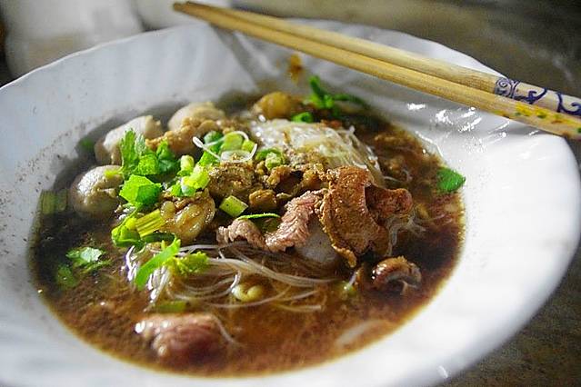 我是一个超级爱街边摊的人,在哪里都不例外。出了7-11看到这家面摊便走不动了,非要进去吃。没想到进去之后碰到了熟人,就是刚刚在机场卖电话卡的两个帅哥,他们也是来吃面的。看我们进来赶快招呼我们坐下,给我们倒水,帮我点餐。我不知道我这碗面的名字,但是味道实在是太好了!本来Anita坚持不吃,但是尝了一口我的面忍不住也点了一碗。
