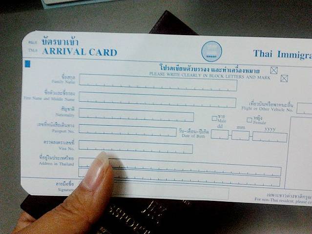 过曼谷海关的时候要填这个表,其实很简单,照着护照填就可以了。填的时候要连回去的表一起填了,泰国海关人员会把它订在护照上,回去的时候要用到。