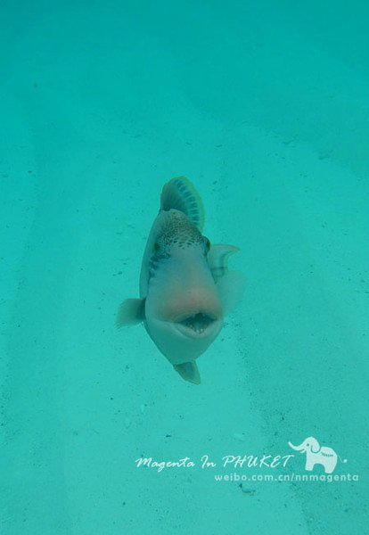 突然我身边来了这么一个大家伙,我不知道是什么鱼,只觉得样子呆呆的。他块头很大的,照片看不太出来,实际上可能有半米多长吧。