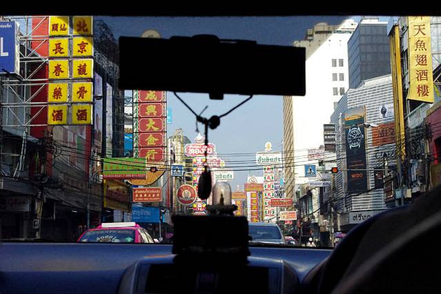 我们在马路边上站了N久,一辆出租车都没打到。不是因为没有车,是拦住车了人家不去,要么就是完全不懂英语,不知道我们说什么。这样肯定不行,于是我和Anita说好,下次看到车直接坐上去,死活不下来,让司机不去也得去。我们果然是这样做的,当我们坐进一辆出租车里,给司机说我们要去大皇宫,请打表的时候,司机说不去。我们问为什么,他竟然说他不知道大皇宫在哪!!!五雷轰顶啊,太搞笑了,这就好像北京的司机不知道故宫在哪一样!我和Anita无奈,只好求他。最后那人说,不打表,300!好吧,就是为了多要钱么。我和Anita开始搞价,最后以200B成交!曼谷的的哥啊,我算是领教了!