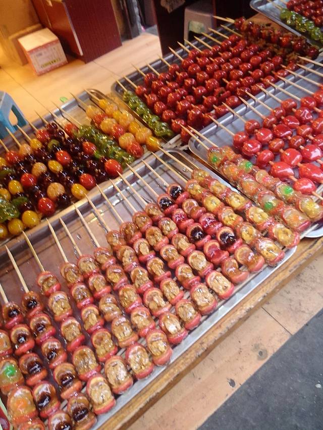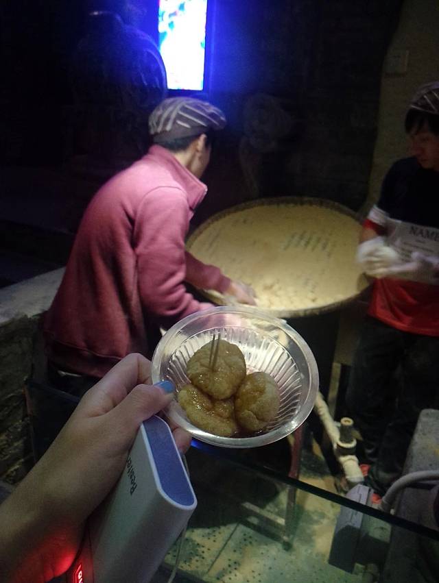 妹子们说都饿了,在宽窄巷子随便买了点吃的 这个是三大炮 ,其实就是类似年糕,现场制作,后面就是在打糕的小哥