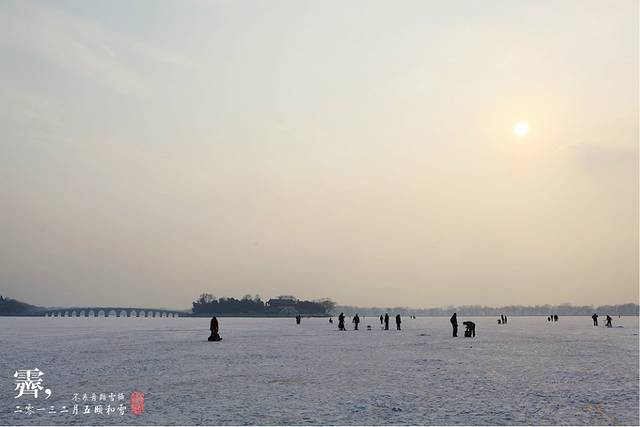 但是这里却是我颐和园冰面之行的终点,望向西方渐沉的夕阳,一丝怅然划过心头,为雪中的颐和园再多留下一些的影迹,也了却多年来想到颐和园拍雪景的心愿。