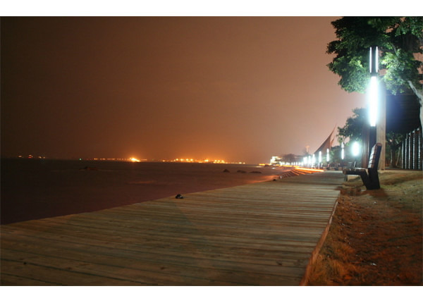 傍晚至海边散步,放松身心。余暮柔和地洒落下来,在颇具南国风情的椰林别墅之上笼了层曼妙的金纱,广阔无垠的海面上更是波光粼粼,光华氤氲,有一种虚幻的味道,如此美景,让人忍不住沉醉其中。临海的木栈道上,海风徐徐,清爽又带着些咸咸的海水味,我们围坐在木质长桌边,欣赏着夜幕下深邃的大海,遥望着彼岸金门岛的灯光明灭,烧烤的香气满溢于鼻间,热情洋溢的音乐缭绕不绝,还有可口的美食展现在眼前……啊咧啊咧,好一个充满热带风情的Barbecue啊,不错不错!O(∩_∩)O~