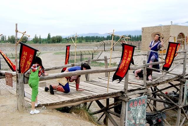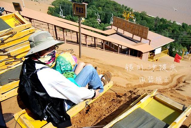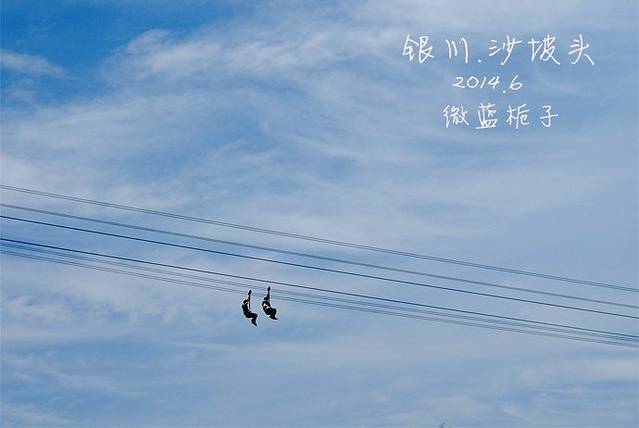 沙坡上空有人高高地沿着飞索飞过,一直飞过沙坡下蜿蜒的黄河。小米立马表示想玩这个飞越黄河。呃,米大胆就是米大胆,啥都想尝试啊!其实我也想,尽管看着有些害怕,但真刺激啊!奈何我们的套票里没有这个项目。所以说,如果是自由行的话,就可以不用在乎时间了,一样样玩过,方才过瘾啊!