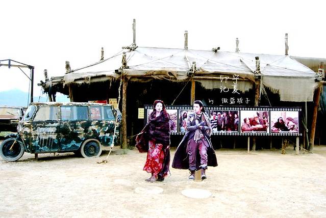 明城里搭建的场景无数,比如坞堡、匪楼、长坂街、黄沙镇、黑风寨等等。还有一间又一间的旧时代民家院落、街市铺子林立,可是一眼望去,那些在原址上夯建起来的城墙,仍然是那样地充满了荒凉、悲壮、残旧的感觉。