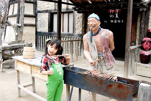 第一站到达的老银川一条街,在各种明清、民国电视电影中都能见到的场景,基本上我们都见怪不怪了。小米同学却很是新奇,这儿摸摸、那儿看看,一一体验了个够。