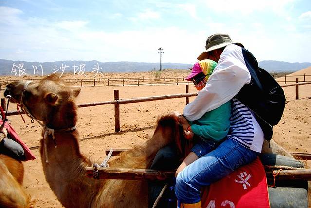 全副武装打扮完毕后,骆驼的骑行之旅即将上演。迫不及待的小米早已按捺不住兴奋了,和米爸一起乘坐,靠在米爸的怀里,骑在骆驼的背上,晃晃悠悠地穿行,真叫一个享受啊!不过要提醒一下的是,上骆驼和下骆驼时一定要抓好扶手,并且骑上骆驼后,在它站起来时身体注意前倾再后仰(因为骆驼时前腿先起,再起后腿,我们的身体跟着先前倾再后仰,可以减少突如起来的身体摇晃),而要下骆驼时,在它跪下来时身体注意先后仰再前倾,以保持身体的平衡。