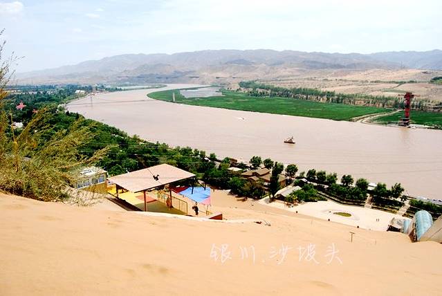 在中卫某家饭店吃完了“小黑餐”(就是有猪肉的餐)后,就到了沙坡头,一路看到沙坡头景区里修契得十分高大宏伟的建筑。一瞬间,眼前开阔无比。