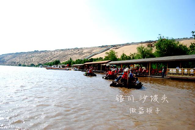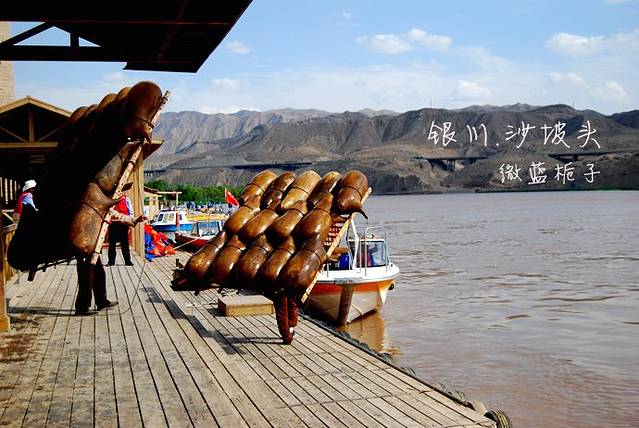 都说沙坡头旅游有三大特色,一就是滑沙,据说滑沙时座下会发出一种奇特的响声,人们称之为“金沙鸣钟”。二是腾格里沙漠,三就是乘坐这羊皮筏子,行在黄河之上。