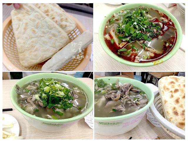 我们去的是位于北京东路北安巷亘元銀筑2-8号(国际饭店东100米北转120米)的良益轩新店。这儿的羊肉泡馍是切成一条一条的放在羊肉汤里,汤浓且多,还有羊肉,粉丝,汤头喝起来很是美味。此外,羊肉夹馍也是这儿的一大美味,清炖的大块羊肉剔骨剁碎,夹到馍中,吃起来一点膻味都没有,而且份量十足!狠狠吃上一口羊肉夹馍,再吃上一口羊肉泡馍,喝上一口汤头,太美味啦!