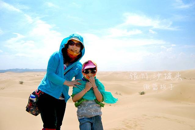 母女合照一张。回头找出2岁多的小米游宁夏的照片,对比一下,看小米同学长大了多少。我这防晒衣的颜色,和小米的披肩还挺搭。其实如果你带一条大纱巾或是围巾,披在头上的话,就可以变成一个很应景的头巾,防风沙效果也是一流的,凹造型的效果也是一流的。我最初带这条绿纱巾时也是这么想的,只不过计划赶不上变化,纱巾就这么变成了披肩。后来,还充当过裙子。这是后话了,暂且不表。