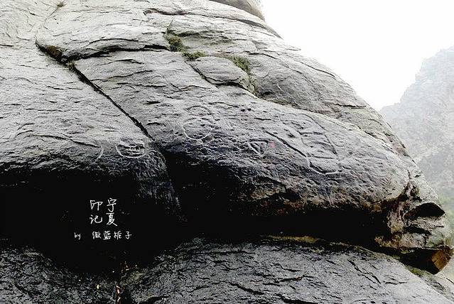 关于贺兰山,估计有很多人如我一般,都是经由岳飞的那首《满江红》中“踏破贺兰山阙”,才知道这么一个地方吧。贺兰山在古代是匈奴、鲜卑、突厥、回鹘、吐蕃、党项等北方少数民族驻牧游猎、生息繁衍的地方。他们把生产生活的场景,凿刻在贺兰山的岩石上,在南北长200多公里的贺兰山腹地,就有20多处遗存岩画。其中最具有代表性的是贺兰口岩画。岩画分布在贺兰山全长250余公里、从北到南的十多个山口中。在贺兰山树林口、黑石峁、归德沟、贺兰口、苏峪口、回回沟、插旗口、西蕃口、口子门沟、双龙山、黄羊山、苦井沟,发现岩画群20多处,画面总数约在万幅以上。而这些画因为没有很好的保存措施,已经日渐风化、模糊,一天少似一天了。目前开放给游客观看的,也仅仅只有分布在沟谷两侧绵延600多米的山岩石壁。
