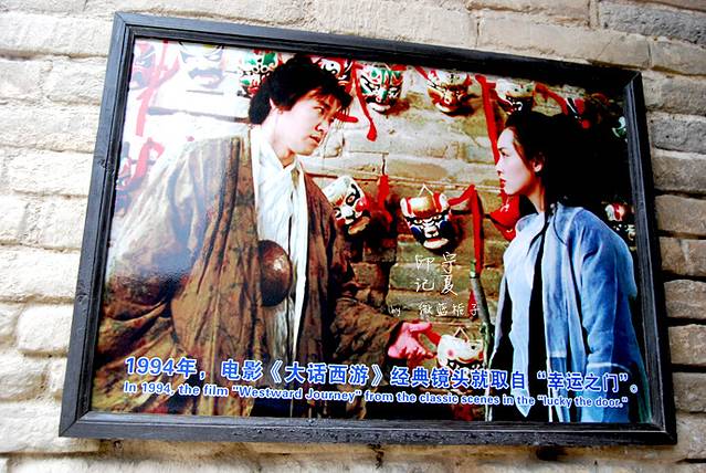 三不洗澡堂。《大话西游》中蜘蛛精洗澡的地方。后来在《新龙门客栈》中改为“三不洗澡堂”,即:年老者、醉酒者、皮肤溃疡者不得入内。在门外看平淡无奇,但进入门内,就会看到房屋上空仍然悬挂着剧中的“蜘蛛精”。呃,看上去还相当逼真,有点小恐怖。。。。。
