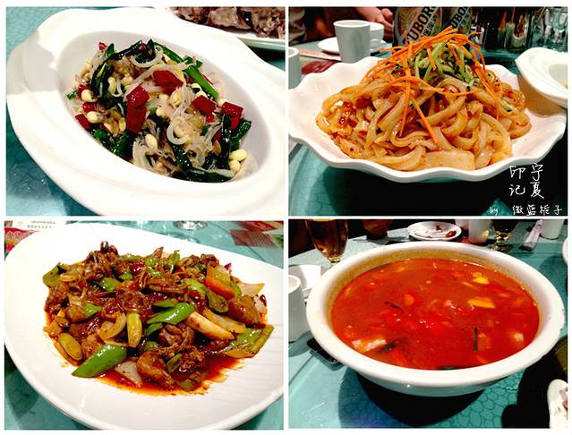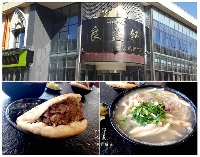有着一连串头衔的老毛手抓,其总店,也称鼓楼店,位于银川市解放东街93号(鼓楼东北角),交通极其方便。在店里的确看到许多老毛手抓的老板与多位国家领导人合影的照片,还有葛优等人也都曾到此品尝过美食。在这儿,我们首先要尝的,自然是最出名的手抓羊肉。此外还有香煎羊肉饺子、西夏烤羊排、辣爆羊羔肉、炒烩肉、生拌苦苣、上汤娃娃菜、凉皮等,其中那盘羊肉饺子,基本被小米消灭了,而烤羊排则是喷香得让我们又点了一盘。