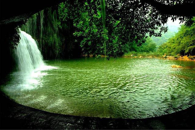 四洞沟的瀑布还是挺不错的,第一个水帘洞,可以从瀑布中间穿行,第二个月亮潭,第三个是蛙跳崖,最后一个白龙瀑布,而白龙瀑布是四个中落差最大的,站在瀑布前方都可以感觉到水花溅起来形成的小雨,打在脸上非常的舒服。
