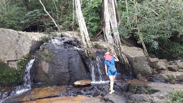 早上一大早醒来,洗漱完毕,在酒店吃过早餐,就在对面的大东海广场站牌等大巴车,车牌号是导游前一晚10点前就会通知你的。等车过程中,很多辆大巴车有去温泉的,有去南山寺的也有去蜈支洲岛的,相当的多,在这边定一日游是完全可以的。大巴车很准时,上车报手机尾号,就可以了,在车上,帅哥导游讲解呀诺达的意思,和景点之后的参观路线。幽默风趣,经过一个多小时的车程,到了景点,导游给每人发了一个小卡通贴,是我们这次一日团的团徽,呵呵,可爱撒。然后进行分组,想去踏瀑戏水的一组,观光游览的一组,两组路线是一样的,区别是一个从陆地上走,一个从小溪上走。从踏瀑戏水是100元一个人。说贵不贵说便宜也不便宜。我们走的是观光游览路线,个人觉得做这个决定也是正确的,岩沿途可以看到他们玩水,也不错。一路向上,很多大树,空气非常湿润。中间也有可以下水的入口,大约一个小时,就能游览完,中午是山上的自助餐。说说这个自助餐,虽然是在景区里面,性价比却是这几天自助餐最高的。里面可以吃的非常多,味道也很不错,鸡鸭鱼肉样样全,最不错的是药膳汤,排骨枸杞汤,味道大赞。还有清凉补可以自己调哦,看着好吃的尽管忘里放,真是大快朵颐啊!景区里还有卖香皂的和黄花梨的,香皂很香,后悔没有买一块,倒是不贵,30左右一小块。是论克称重的,但是我妈跟我说景区都是骗人的,千万不要买,ok,听妈妈的话,我一点都没有买。黄花梨相当的贵啊,算了,饱饱眼福就好了。下午继续游览热带雨林,走过了幸福门,参观了见血封喉数和金不换。呼吸着在北方呼吸不到的空气,感觉真爽啊。当然,消费无所不在啊,途中,导游会让品茶休憩,喝着味道好的就买。茶叶确实不错,价格也算适中,买点喝也是可以的。呀诺达是我去过的景区中,商品价格还算不错的。
