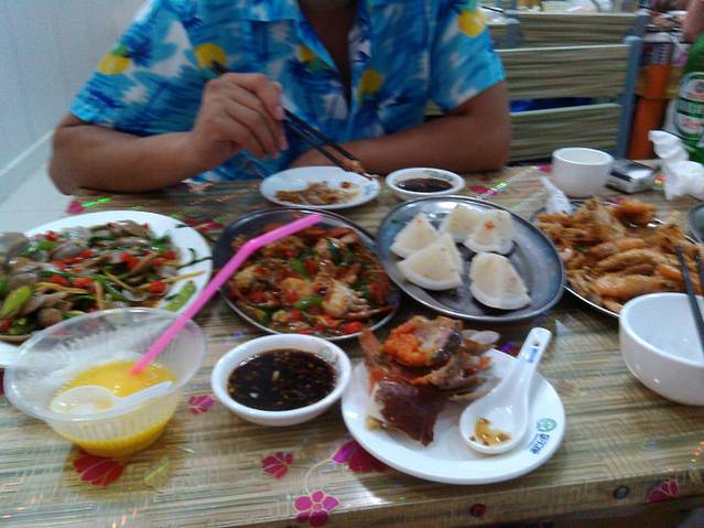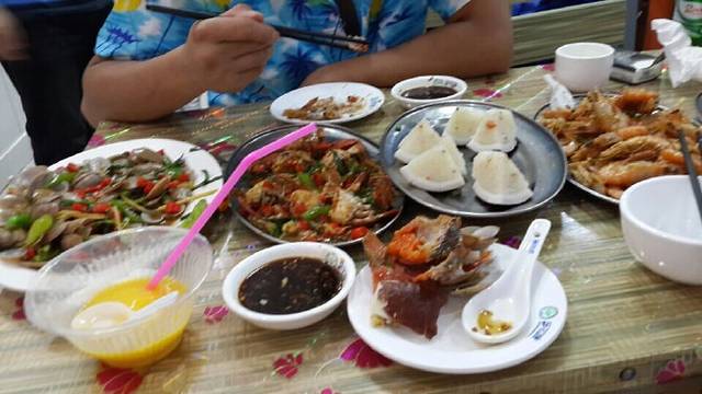 介绍下这顿饭吧:和乐蟹黄很多,是香辣炒的,基围虾是要的椒盐的,很酥脆。椰子饭是赠送的,浓浓的椰子香,芒果螺自然是辣炒的,哦?四角豆没有照上哦,四角豆很奇怪,不错吃多了海鲜可以清口,感觉和豆角有点像,不过比豆角脆。