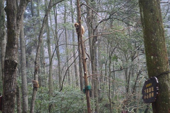 满山都是猴子猴孙,总担心它会扑上来!