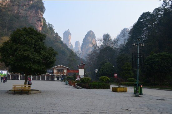 火车早上9点多到的张家界,刚走到出站口,就看到娟子安排的帅哥导游朱导举着我们姓名的牌子在出站口等着我们,来到这个陌生的城市,有人接的感觉很温馨、很鸡冻哈!接着朱导带我们去吃了当地的特色早餐——米粉,据说张家界人早餐大部分都吃这个,吃完早餐直奔去森林公园的汽车站(早先自己查2014年张家界的攻略看到说汽车站是到市中心,据娟子说汽车站12年初就迁到火车站旁边了--攻略也不可全信啊),坐上去森林公园的车,40多分钟就到了公园门口