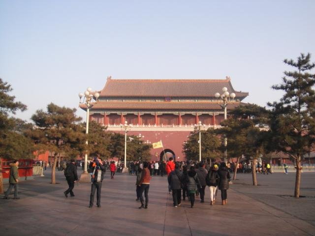 下午抵达北京,刚下飞机就体验到北京的冷,虽然青岛也冷但是2种感觉,北京机场就是大啊,有点要迷路的感觉,不过还好跟着人流走很快就到了出口,没走多远接机的师傅就来电话了,问我们在哪个位置过来接我们,师傅很守时,人也热情,在路上跟我们聊天,路过长安街附近的时候还给我们做了简单的讲解,路上没有任何堵车,很快就到酒店了,真的是过年了,大家都回家去了。到了酒店迅速办理入住,找好我们的房间,简单收拾了下东西,立刻出发去天坛,我们在北京的第一站,小小的激动了下。离酒店很近,做公交车大约4站吧,路过天桥剧场,郭德纲是不是在这里有场子啊,好想去听听,我跟男友可都是钢丝啊,下了公交车马路对面就是天坛啦,真的好近。友情特别提示:天坛要赶在下午4点前买好联票,不然里面主要的景点就看不到了(祈年殿,皇穹宇, 圜丘,回音壁),我就没有看到,只在外面瞎溜达了一圈,过年期间还有祭天表演呢,可惜我错过了时间,不开心啊,北京的第一站就这么不顺利,我这个不甘心啊,可是也没有办法,遗憾啊,带着我的遗憾带着我的不甘心只能撤了,绝对不能影响到我接下来的心情,我们直接杀到前门去吃好吃的,对于吃货来说,一切的不开心只要有好吃的就可以烟消云散,哇咔咔 :》。其实,鲜鱼口,前门,大栅栏都离的很近,我也不知道要怎么区分。过来这里已经到晚上了,华灯初上,陌生的城市,热闹的巷口,熙攘的人群,喜欢这里的感觉,虚幻又真实。开始寻觅美食,这里小吃很多,炒肝,炸酱面,老酸奶,烤肉,臭豆腐,也有很多老字号,狗不理,瑞蚨祥,全聚德,御食园等,我们每天晚上都来这里吃好吃的,来这里溜达,天天来但总能有新的发现,新的惊喜,住在这附近真的是太太明智的选择了。告别前门,继续往前溜达,不知不觉的就走到天安门广场,夜景真美,晚上一种不一样的感觉,淡淡的灯光,庄严而又宁静。