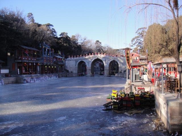 苏州街一角,今年冬天没那么冷,河水虽然结冰了,但冰层太薄,不敢下去玩,太危险