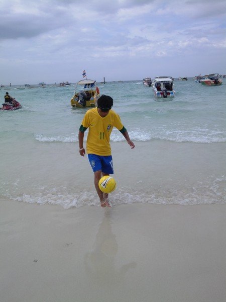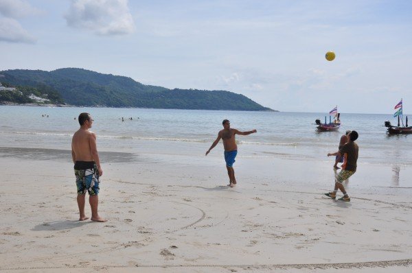 开了二十来分钟吧,就到卡塔海滩了,海水不像之前再网上看到的那么蓝,还没芭东的海蓝,不过海岸线很长,也很宽,非常适合踢球。