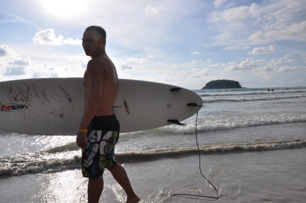 还有很多老外在冲浪,租个冲浪板150猪一小时