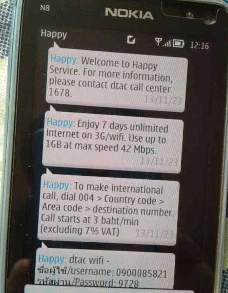 1,把手机时间往后调1个小时,插上买好的HAPPY卡,马上就会收到7,8条短信,什么00400,3G之类的,你就可以安心打电话上网了哈。我买的是7天无限上网的HAPPY卡,但是第八天我依然可以浏览网页和导航,一直到最后第十天走的时候都还可以,不过发微信图片就很慢了。