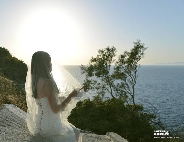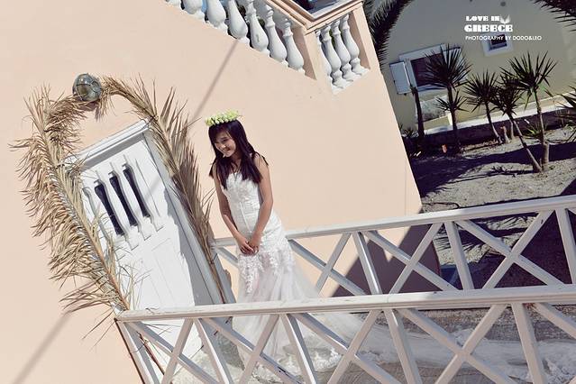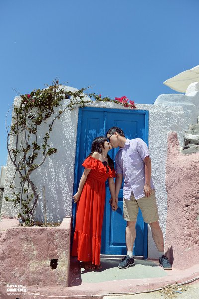 带着婚纱去圣托里尼的想法是一闪而过的,把这个浪漫的小岛做背景,婚纱才是最好的搭配吧,但对于很怕麻烦的我来说,找地方换婚纱,还要憋一路的穿着想起来实在很头痛,于是我们就先准备着,至于穿的穿不到就看缘分了