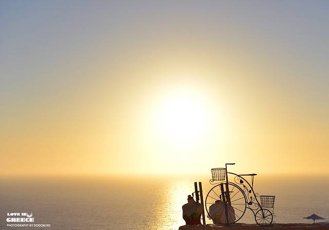 这一片酒店应该是oia最昂贵的吧,开窗便是爱琴海的日落,这两位也太惬意了吧!