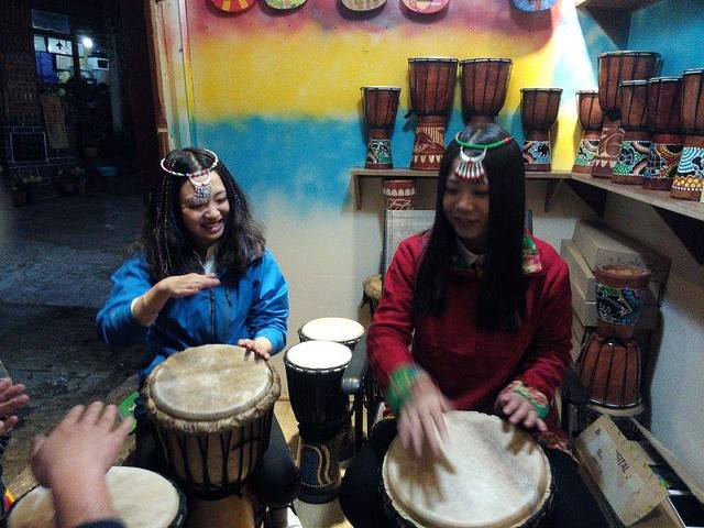 今天露营回来后休息了一下就退房,从束河搬到大研。明天一早就正式出发去雨崩了!晚上在大研逛了一圈,蹭在店里学了一下非洲手鼓~