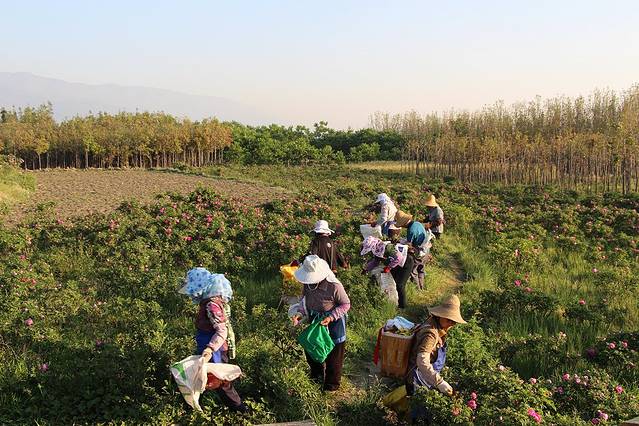 又是随手拍出一幅画,她们在采玫瑰花,做玫瑰花茶用的!