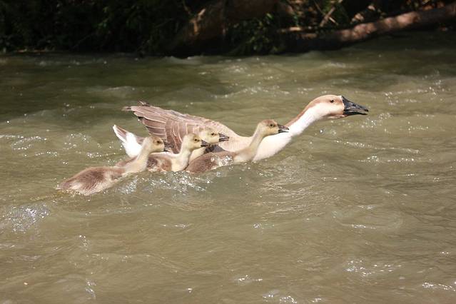 鸭子妈妈:孩子们,爸爸就在前面,我们要加油游上去。它们在逆水而游,看得我心急如焚,好像帮它们一把,但只能在傍边未鸭子们喊加油加油!!